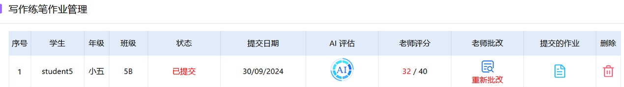 ★ AI作文测评>AI作文测评功能,网上作文批改工具和作文评量表,减轻老师作文批改工作量,提高教学效率。
