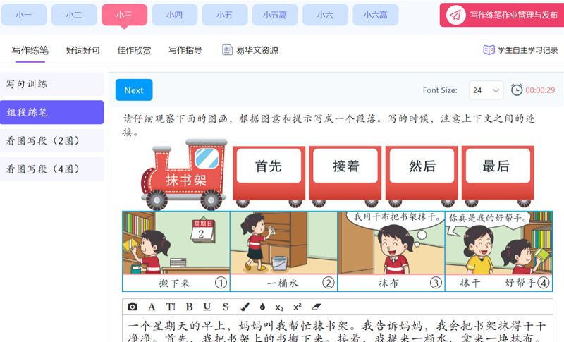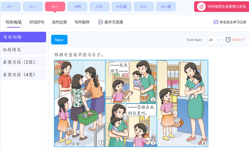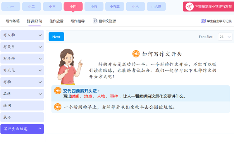 写作练笔作文辅助教学资源与互动练习,配合新加坡教育科技总蓝图2030,根据教育部小学华文/高级华文教学要求,满足老师的作文教学需求和学生的写作练笔需求。