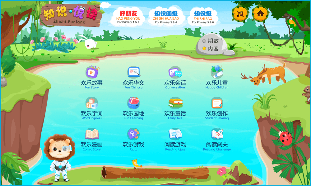 Zhishi.Funland inspires students' passion for learning Chinese, cultivates their interest and habit in reading Chinese, and enhances their overall Chinese language proficiency. It reinforces key learning points from textbooks and improves their listening, speaking, reading, and writing skills in practical language application.